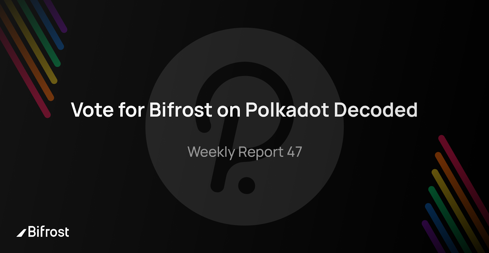 본 포스팅은 < 원본 : Vote for Bifrost on Polkadot Decoded, Weekly report 47 >의 번역본으로 바이프로스트 파이낸스 프로젝트에 관심이 있는 커뮤니티 투자자분들의 편의를 위해 작성되었습니다.