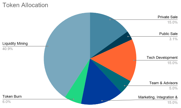 전체 물량 중 40.875%에 해당하는 큰 비중이 유동성 채굴에 할당되어 있으며 세일 물량은 약 18.125% 입니다.
