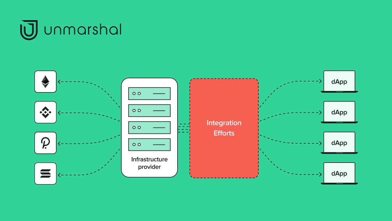 이 새로운 생태계를 구축하기 위해서는 반복적인 작업이 많이 필요합니다. 예를 들어, 안전한 자산 관리에 관련된 문제를 해결하려는 모든 암호화폐 지갑 관련 프로젝트들은, 서로 다른 블록체인에 대한 색인을 만들고 거래내역이 포함된 각 지갑 잔액을 찾아내야 합니다. 모든 암호화폐 지갑 애플리케이션의 가장 중요한 목표는 이용자가 안전하고 편리하게 자산을 관리할 수 있게 하는 것이지만, 이를 이루기 위해서는 동일한 블록체인에 대한 색인을 만들고 그것을 자신들의 앱에 적용하는 기술적 연구를 매우 신중하고 반복적으로 작업해야 합니다.