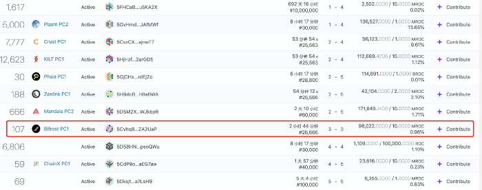 5 단계 : 마지막으로 여러분이 지원한 Bifrost Finance의 Crowdloan 상태를 확인할 수 있습니다 : https://polkadot.js.org/apps/#/parachains/crowdloan