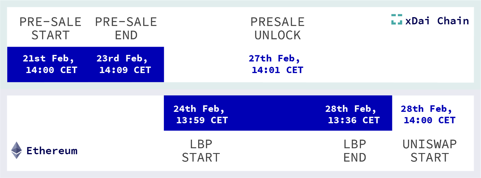 HOPR 토큰 런칭은 xDai 체인에서의 프리세일, Balancer Liquidity Bootstrapping Pool (LBP), 그리고 Uniswap 유동성 풀로의 전환이라는 세 단계로 이루어졌습니다. 이 글에서는 2 단계인 LBP에 초점을 맞출 것입니다. 1단계 프리세일에 대한 분석은 여기에서 확인할 수 있습니다.