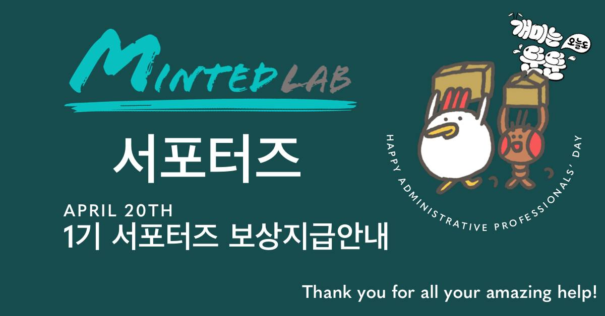 저희가 운영하는 민티드 랩에서 1기 서포터스를 성공적으로 끝 맞췄습니다.