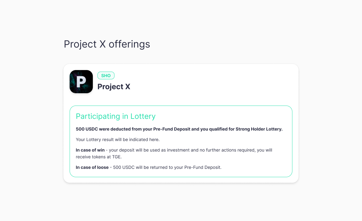 만약 당신이 할당 자리를 당첨받았고 500 USDC가 할당액이었다면, 우리는 당신의 선불 예금에서 이 금액을 공제하고 자동으로 풀에 이체할 것입니다.
