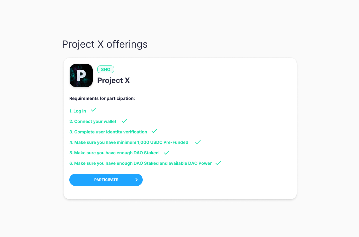 스테이킹은 세일에 접수하기 전 꼭 해야 합니다. 이제 DAO Power가 스테이킹 프로세스를 보완하여 각 특정 SHO에 대해 어느 정도의 지분을 스테이킹 하고 싶은지 결정할 수 있으며, 이를 통해 할당량 당첨이 가능한 위치에 도달할 수 있습니다.