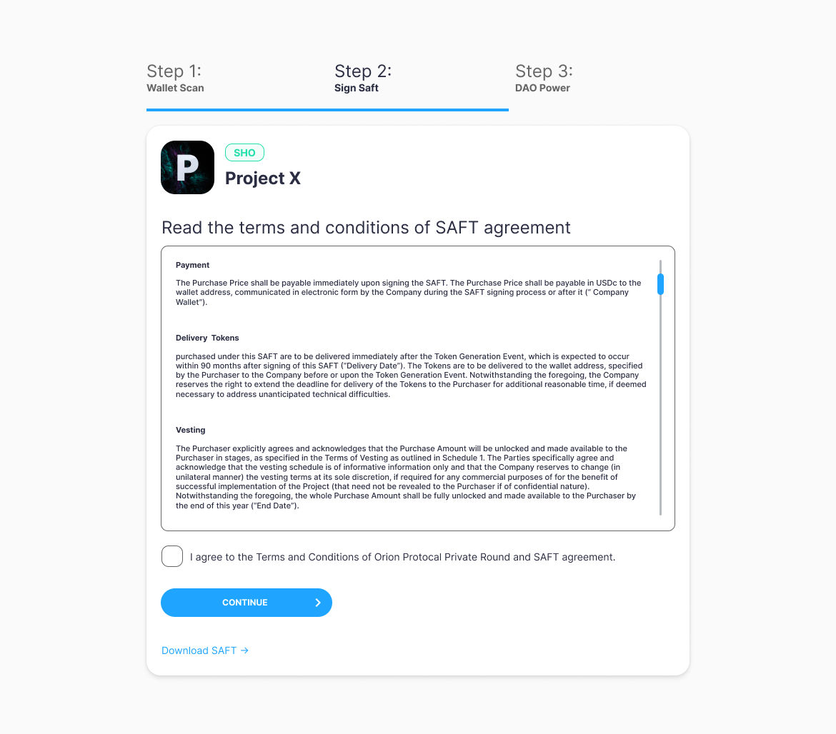 지갑 스캔이 마무리되면 SAFT를 사인할 수 있습니다.