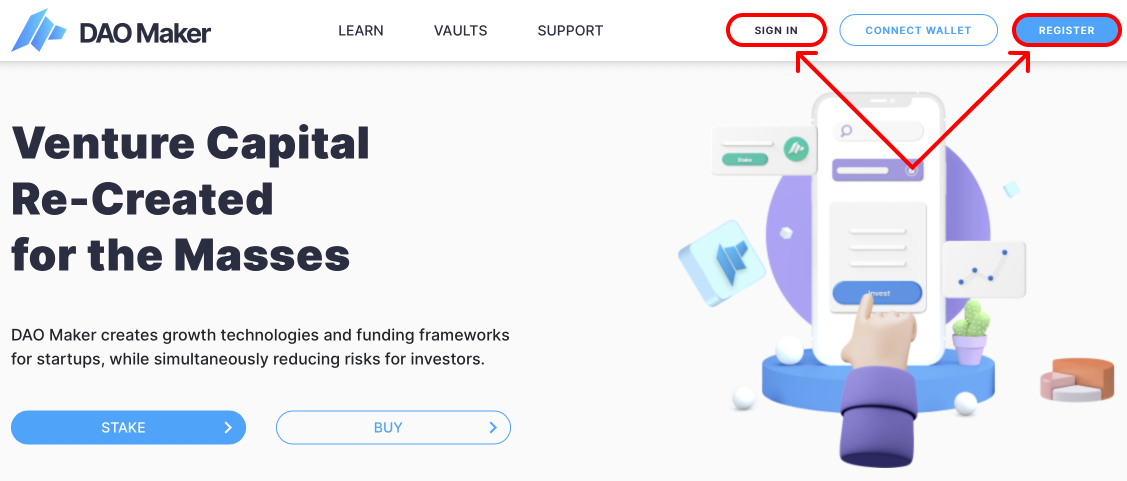 1. https://daomaker.com/에 접속해 아이디 생성 후 로그인합니다.