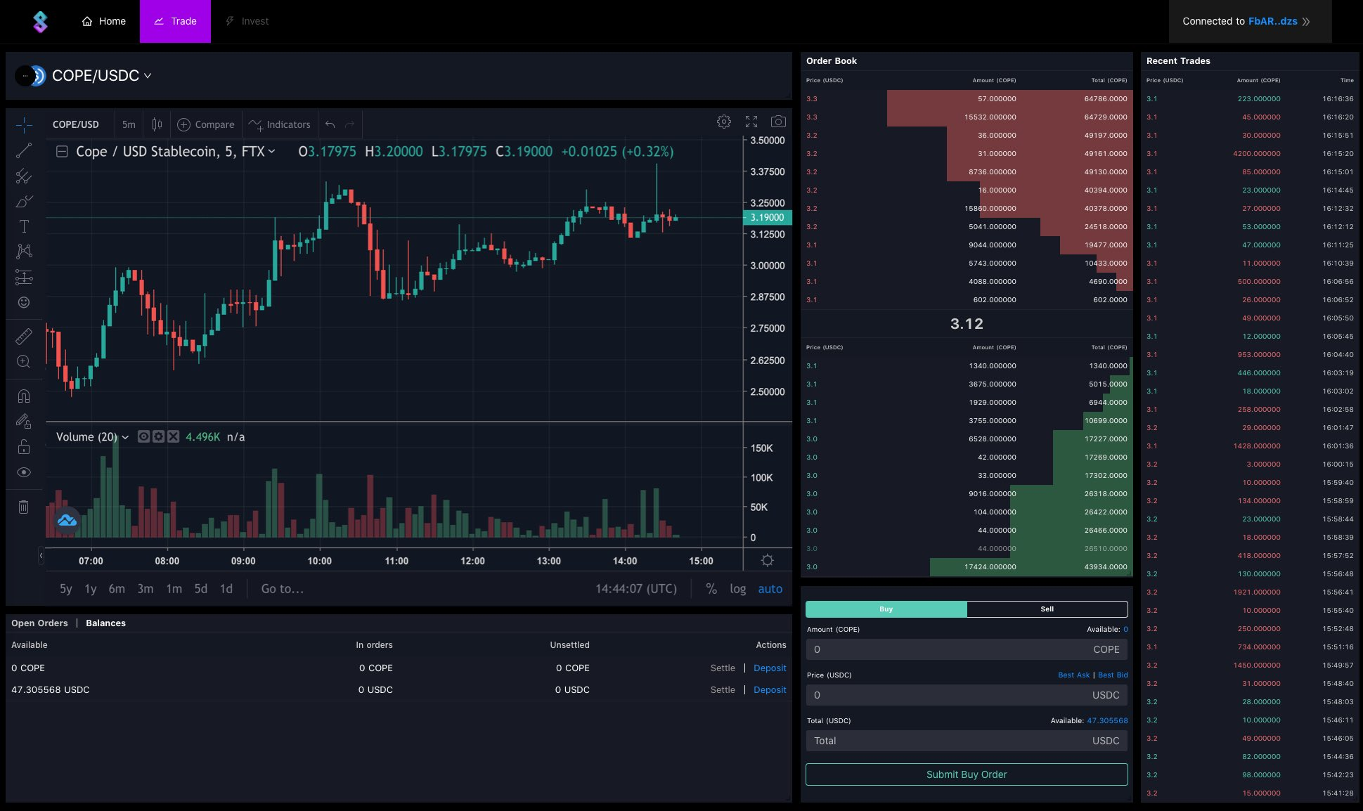 솔라니움의 거래 플랫폼은 맞춤형 Serum GUI를 제공하며 사용자들에게 어색한 DEX를 친숙한 CEX 거래소의 UI 및 UX를 통해 제공함으로써 DEX를 처음 이용하는 사람들도 쉽게 이용이 가능하도록 합니다.
