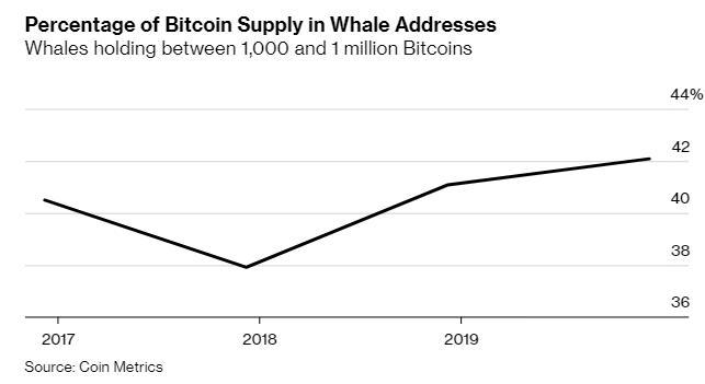 - 비트코인 소유권의 집중이 높아짐에 따라, 그들이 움직일수 있는 자금이 커지기 때문에