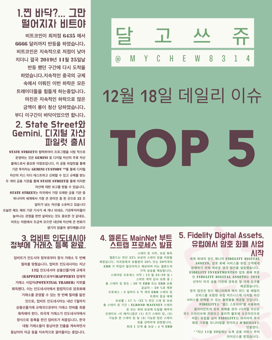 | [데일리 이슈] BSV하드포크 & 이더리움 빙하기 (0) | 2019.12.19 |