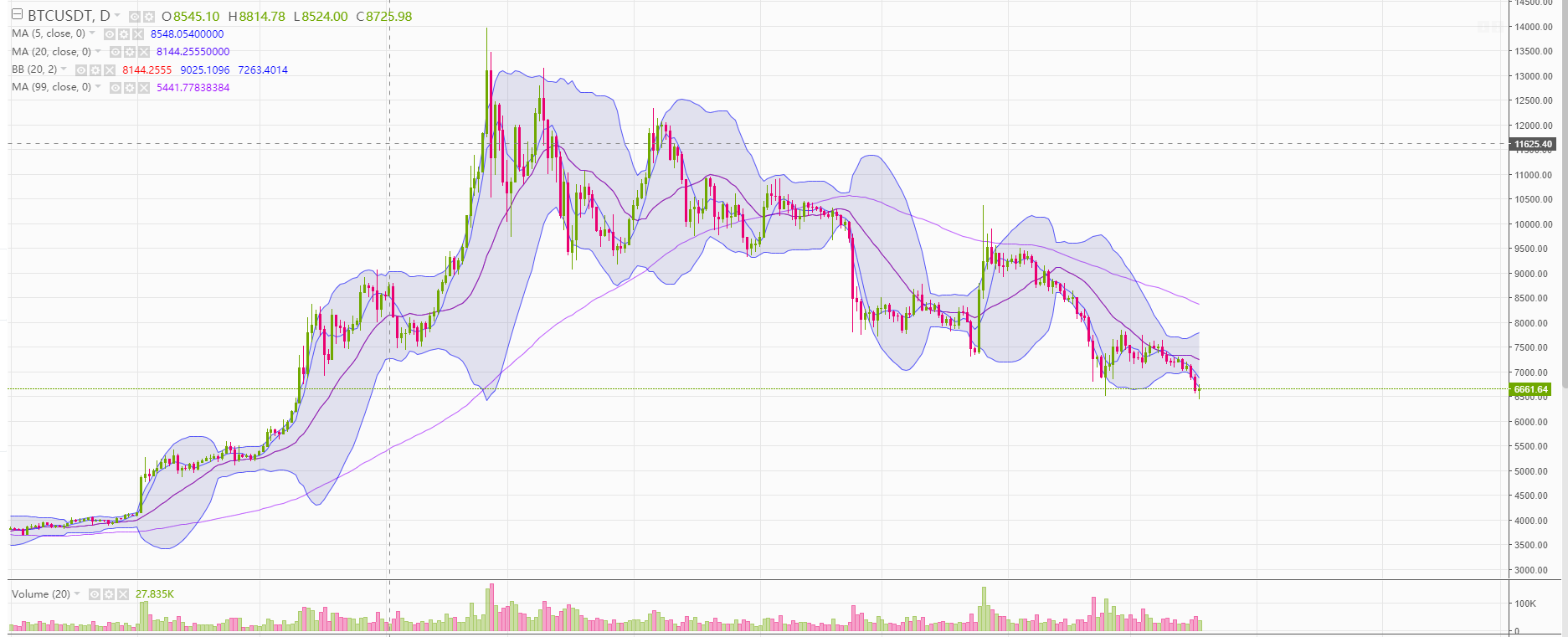 비트코인이 최저점 6435 에서 6666 달러까지 반등을 하였습니다. 비트코인은 지속적으로 저점이 낮아지더니 결국 2019년 11월 25일 날 반등했던 구간에 다시 도착을 하였습니다. 지속적인 중국의 규제 속에서 이뤄진 이번 하락은 모든 트레이더들을 힘들게 하는 중입니다. 마진은 지속적인 하락으로 많은 금액이 롱이 청산당하였습니다. 부디 이구간이 바닥이었으면 합니다.