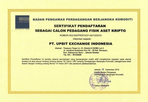 업비트 인도네시아, 인도네시아 정부에 거래소 등록 완료