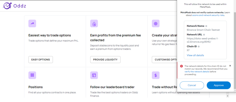 Oddz 인센티브형 테스트넷 링크 - https://testnet.oddz.fi/