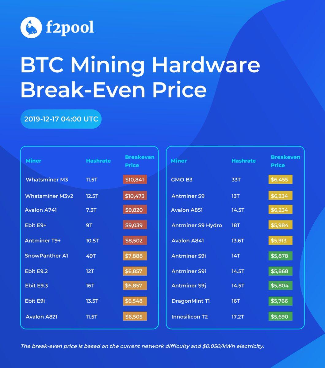 - f2pool에 따르면, 오래된 버전의 채굴기의 경우, 이미 수익성을 잃어버렸고, 몇가지 새로운 장비만이, 수익을 내고 있습니다