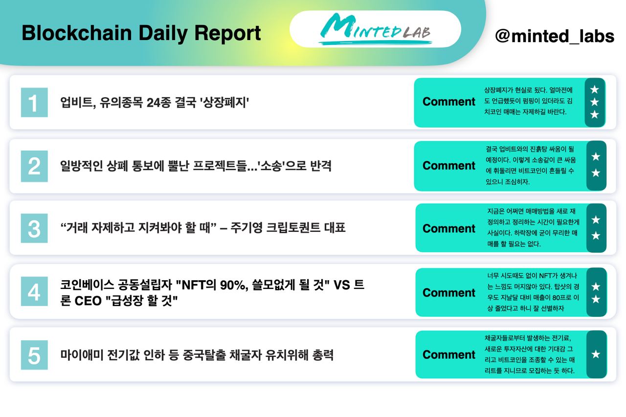 1. 업비트, 유의종목 24종 결국 '상장폐지'