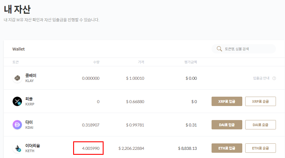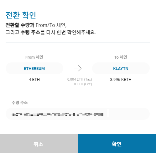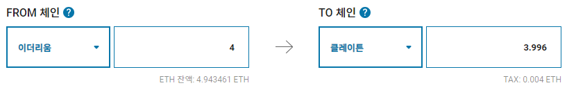 이더리움(ETH)을 클레이튼 계열의 이더리움(KETH)으로 변경하고자 한다면 ETH를 선택해주면 되겠죠.