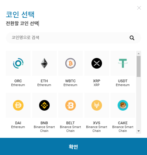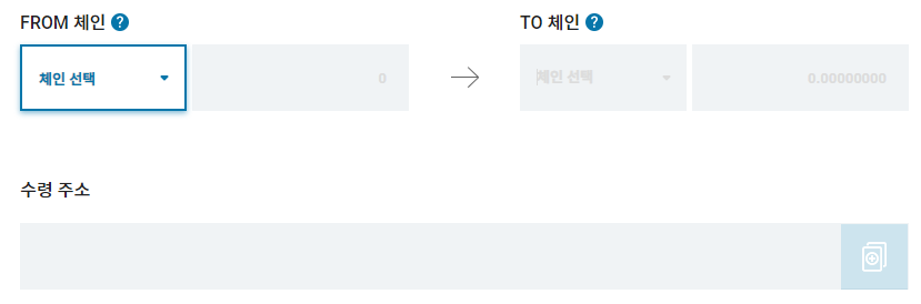 기존의 갖고 있는 체인과 변환할 체인, 변환할 수량 등을 설정 후 수령할 주소를 입력합니다.