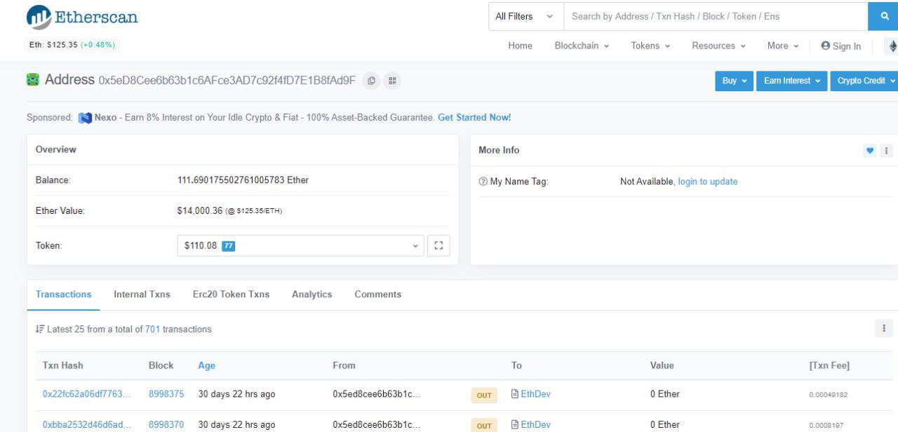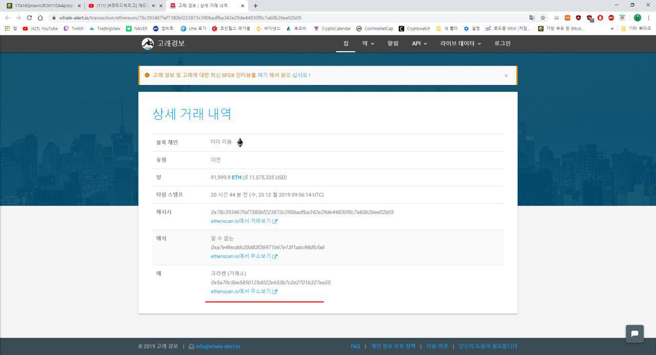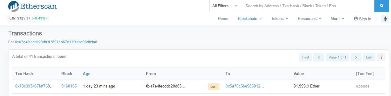 송금 트랜잭션 : https://etherscan.io/address/0x5ed8cee6b63b1c6afce3ad7c92f4fd7e1b8fad9f