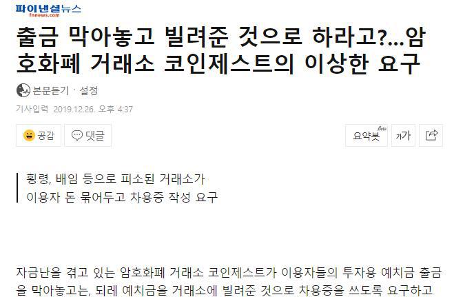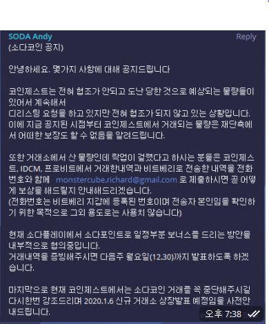 그렇게 함으로써, 코인제스트의 정상황을 위해 노력한다고 하였구요.