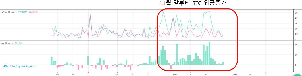 - 11월말부터, 계속해서 증가중이며, 이동량과 반대로, 비트가격은 반대로 가고 있네요.