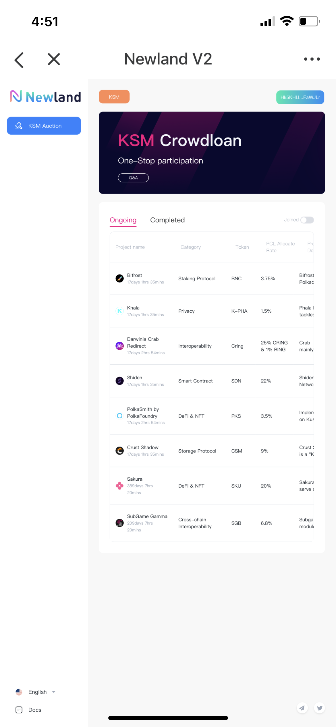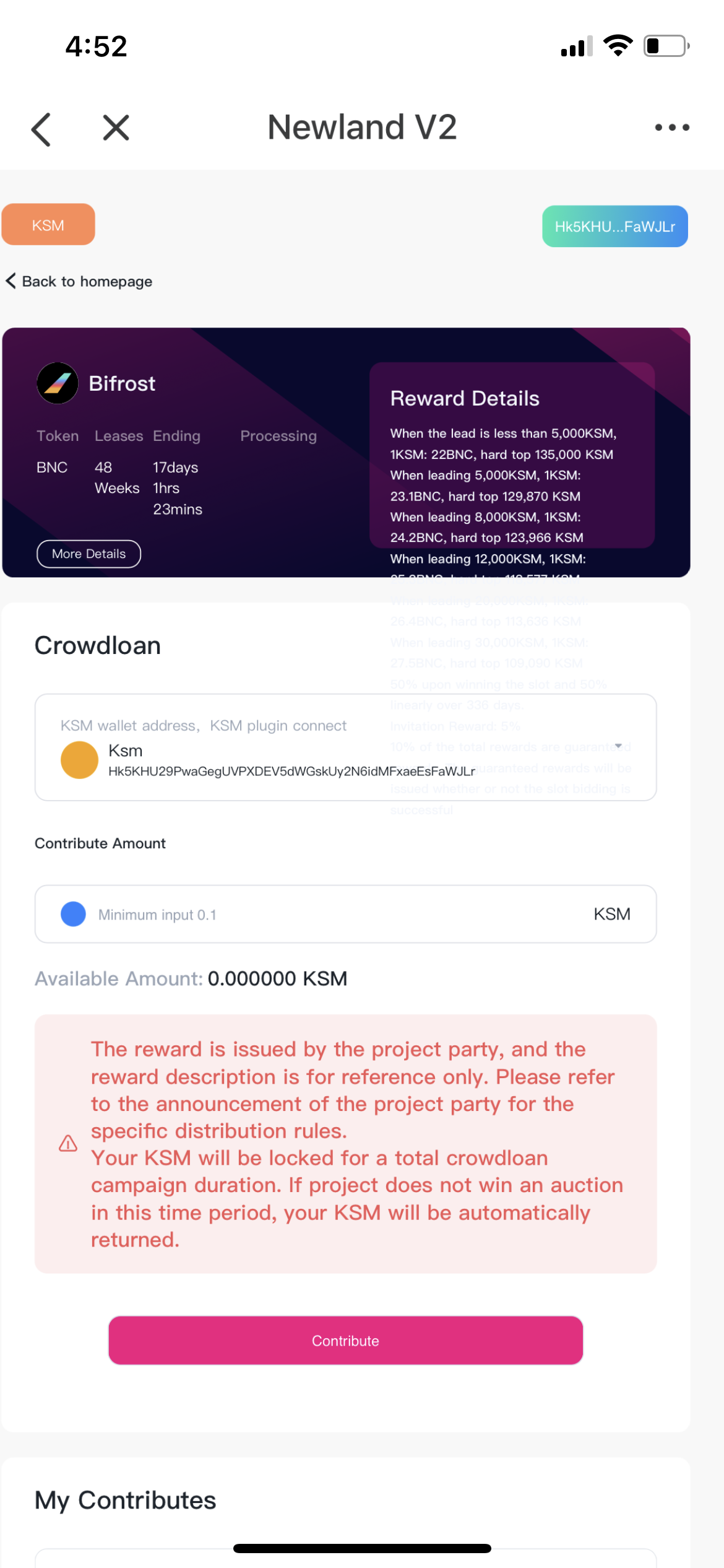 당신은 KSM/DOT 크라우드론에 참가하기 위해 Math Wallet 또는 TokenPocket을 이용할 수 있습니다.