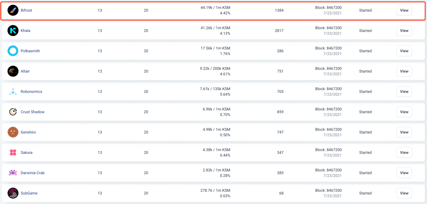 바이프로스트는 바이프로스트-Kusama-크라우드론을 2021-6-15 이전에 만들 것이며, 유저들은 Kusama 릴레이 체인을 통해 직접 참여할 수 있습니다.