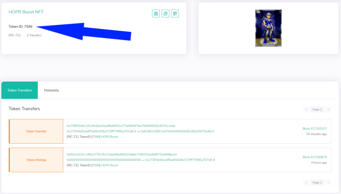 ID는 네모 괄호 안의 숫자입니다. TokenID 링크를 클릭하면 당신은 NFT와 그 ID 및 이미지를 나타내는 페이지로 이동하게 됩니다.