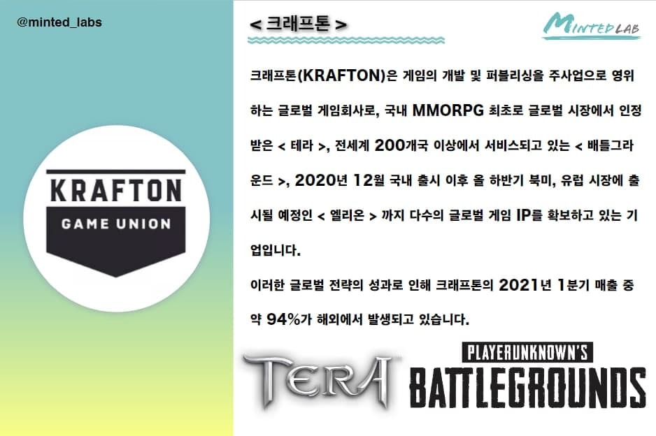 오늘 포스팅을 통해 소개해드릴 내용은 크래프톤(KRAFTON)입니다.