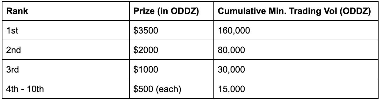 승리자들에게 총 $10,000 상당의 ODDZ 토큰이 분배될 예정입니다.