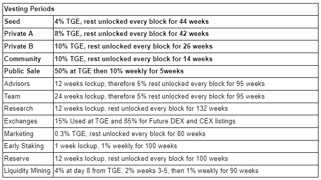 대부분의 프로젝트들은 퍼블릭 세일에 베스팅을 부여하지 않고 높은 가격에 세일을 진행하는데 시냅스 네트워크의 경우 퍼블릭 세일도 TGE시 50%, 이후 5주간 10%씩 배분이라는 베스팅이 존재합니다.