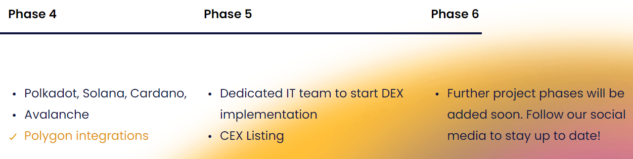 - Launchpad : 네트워크를 위해 설계된 계층형 시스템은 투자자들이 적은 자본으로도 매력적인 프로젝트에 기여할 수 있는 능력을 제공합니다.