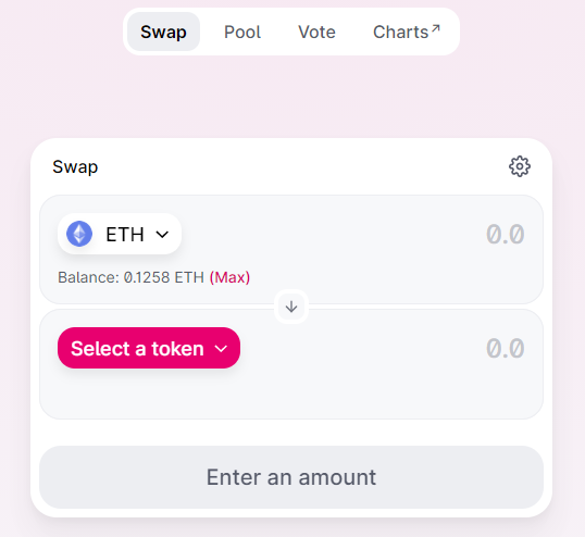 스왑 메뉴에서, 위쪽 박스에서 ETH를 선택하고 아래 박스에서 POLS를 선택합니다. POLS를 찾을 수 없나요? 이 경우 폴카스타터 이더리움 어드레스를 검색 박스에 붙여넣어 수동으로 추가할 수 있습니다.