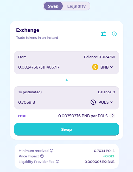 옵션 2 - 탈 중앙화 거래소(DEX)에서 POLS 구입하기