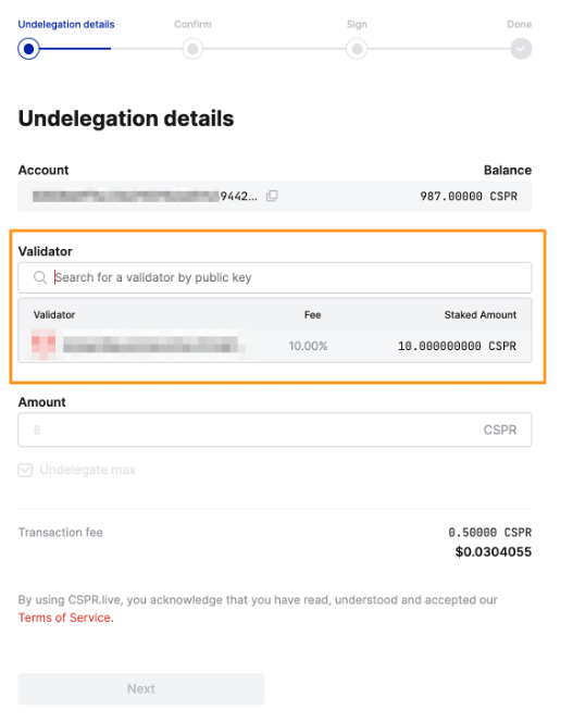 - 위임 해제할 Casper 토큰 금액을 입력합니다.