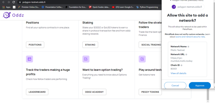 - 인센티브형 테스트넷 참여 - https://polygon-testnet.oddz.fi/