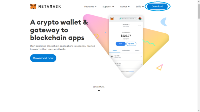 스텝 1: https://metamask.io/에 접속해 다운로드 버튼을 클릭합니다.