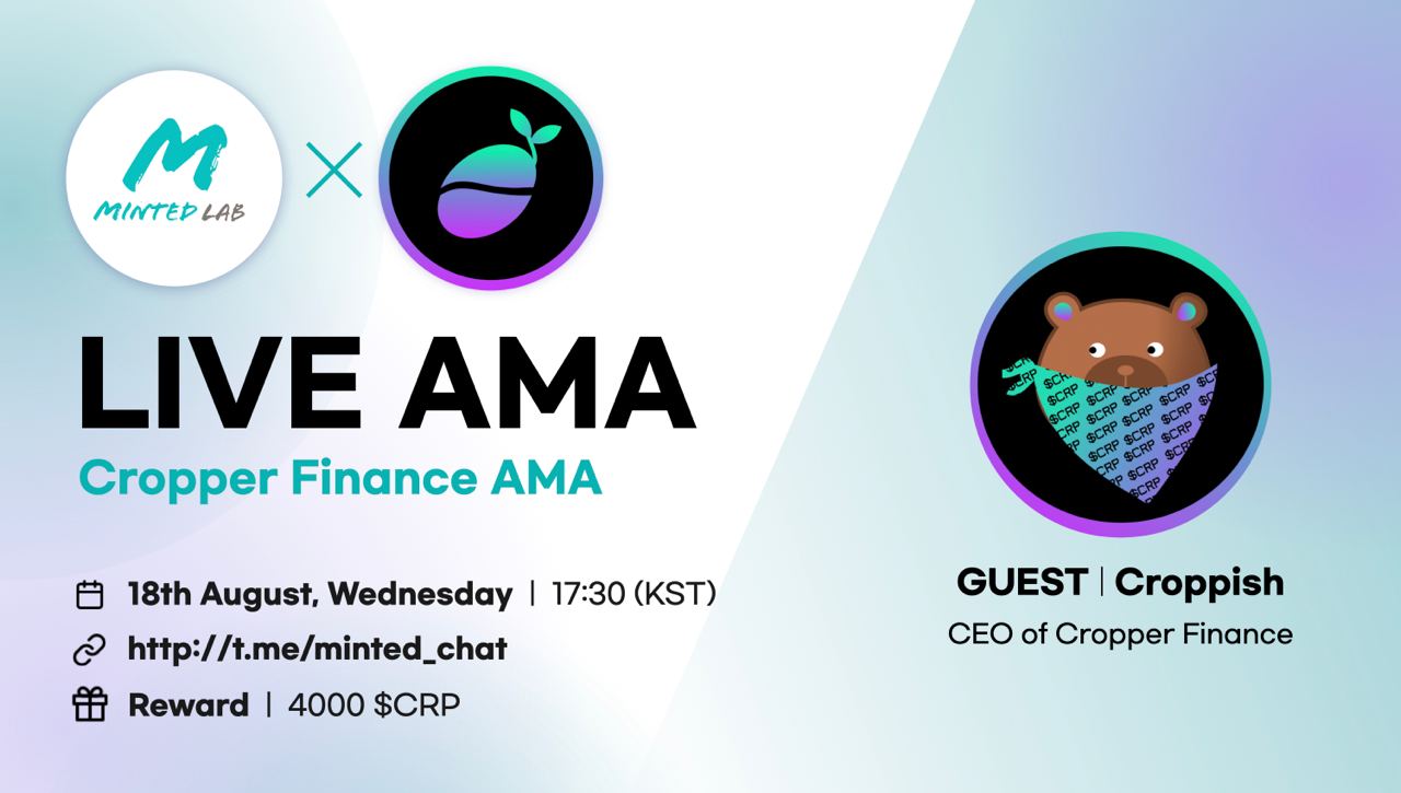 Cropper Finance ํ๊ตญ ํ ๋ ๊ทธ๋จ ๊ณต์ง๋ฐฉ : https://t.me/CropperFinance_KRANN