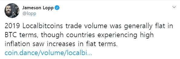 실제로, 2019년 전세계 비트코인 판매량은 정체 되었지만, 특정 국가(국가경제가 불안한 나라)의 경우, 판매량이 최고치를 기록중입니다.