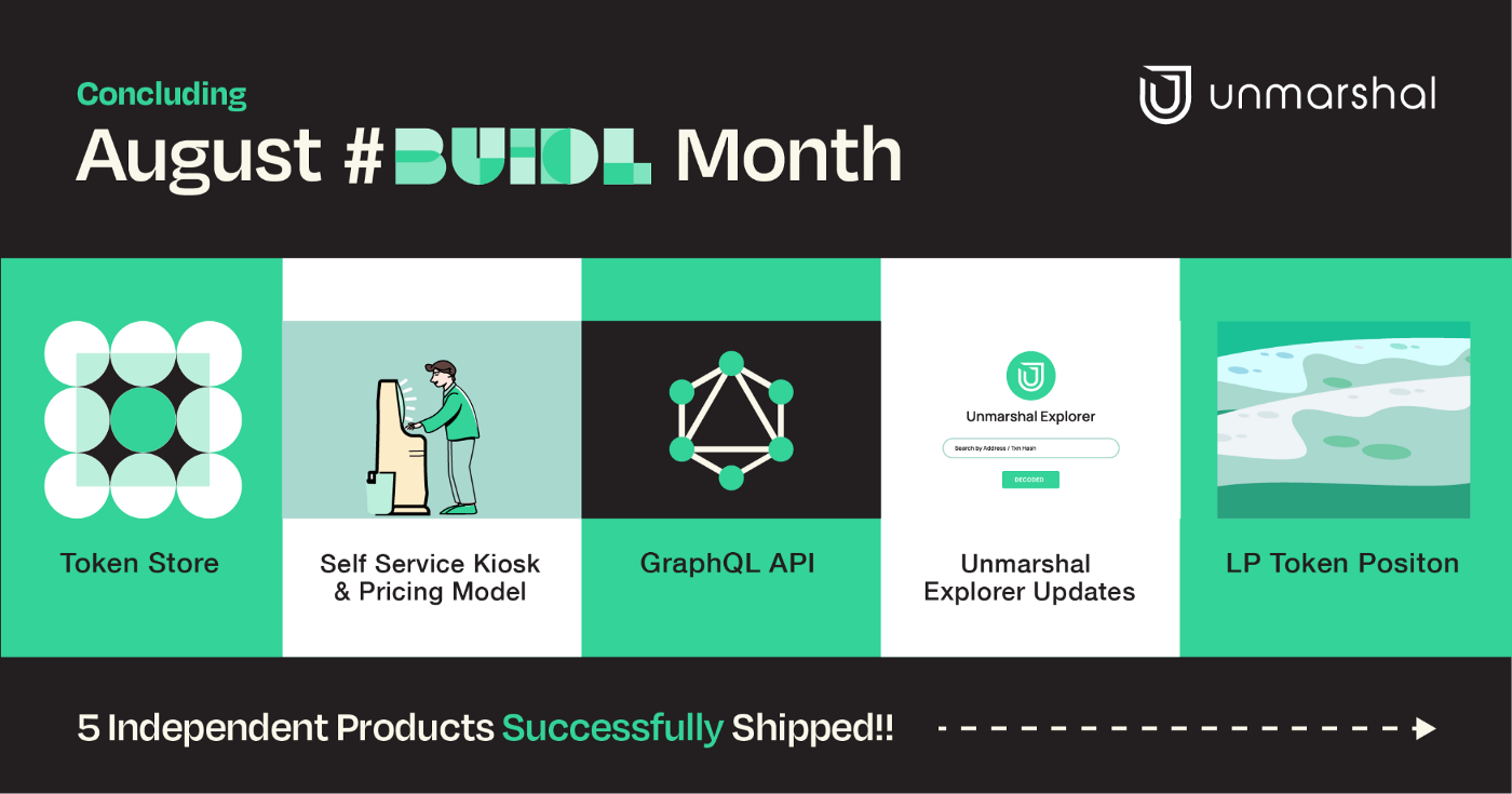 다섯개의 유니크하며 유익한 제품 출하를 통해 8월 #BUIDL 마라톤을 마치게 되어 매우 기쁘고 자랑스럽습니다. 개별 제품은 빠르게 dApp을 확장해 메인 앱에 쉽게 연결될 수 있는 디코딩된 커스터마이즈 데이터를 가져올 수 있습니다. 이 제품들은 또한 Unmarshal의 멀티체인 DeFi 데이터 네트워크를 위한 마이크로서비스 구조를 셋업하는데 중요한 역할을 할 것입니다.