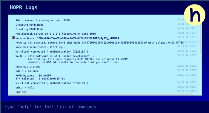 폴리곤 네트워크에서의 HOPR Wildhorn 테스트넷에 관한 두 번째 블로그 글에 오신 것을 환영합니다. 아직 노드를 설치하고 입금하지 않았다면, 파트 1을 참고하세요.