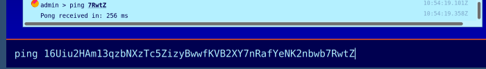 당신의 노드와 다른 노드 사이의 커넥션을 직접 확인하기 위한 기능은 핑 기능입니다. 다음을 입력하세요: