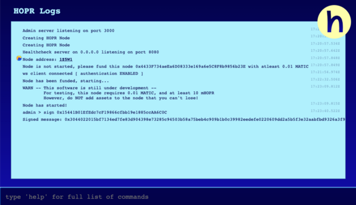 HOPR 노드가 열리면 다음을 입력합니다: