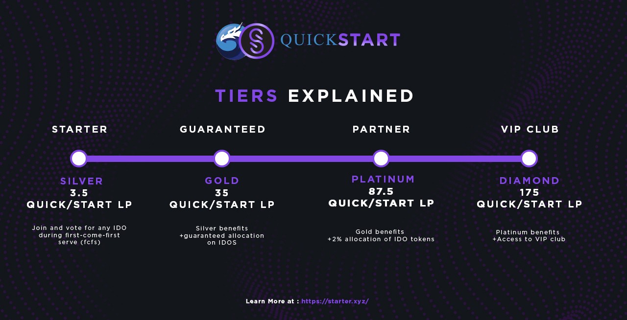 다음은 Starter에서 서로 다른 티어에 이르기 위해 필요한 QUICK/START LP 토큰의 숫자입니다: