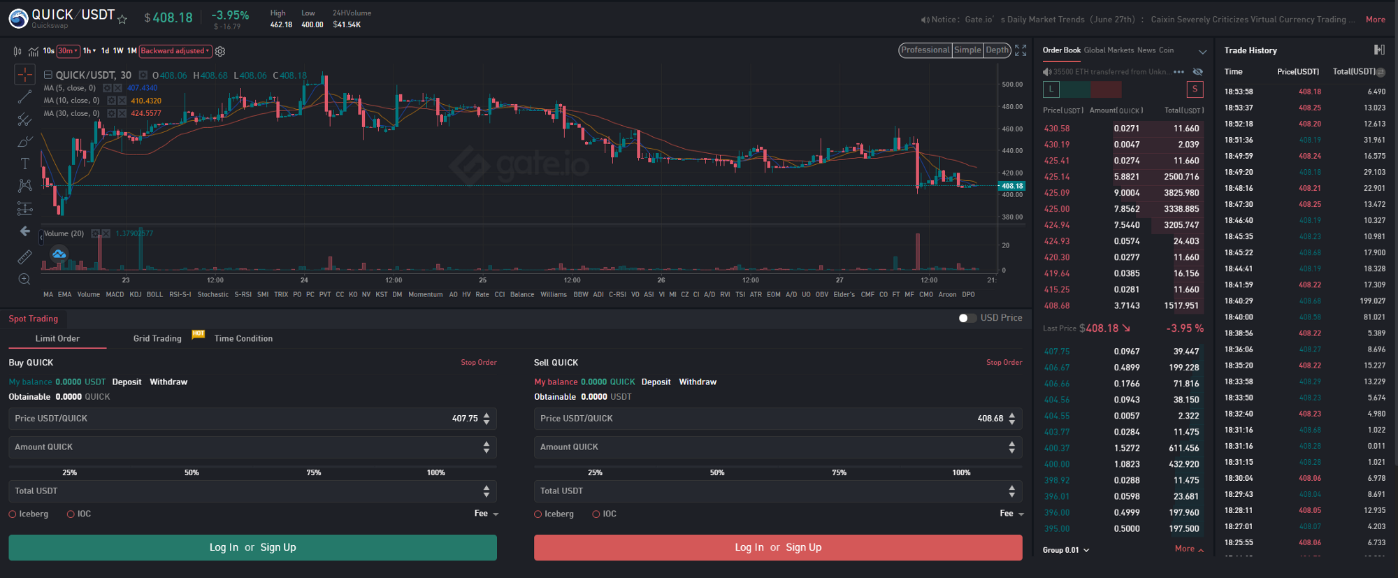 현재, BKEX, MXC, 그리고 Gate.io에서 QUICK 토큰을 판매합니다 (USDT 페어). 신용카드를 통해 USDT를 구입하거나 이미 셋업한 중앙 집중형 거래소 애플리케이션에서 가져와 QUICK 토큰을 구매할 수 있습니다.