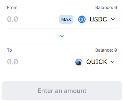 여러분은 코인베이스, Gate.io 등의 유명 중앙집중형 거래소 또는 QuickSwap.Exchange와 같은 유명 DEX를 통해 USDC를 구입할 수 있습니다. 중앙집중형 거래소에서 USDC를 구입하는 경우, 가장 먼저 폴리곤 네트워크로 토큰을 전송하는 것을 잊지 마십시오.