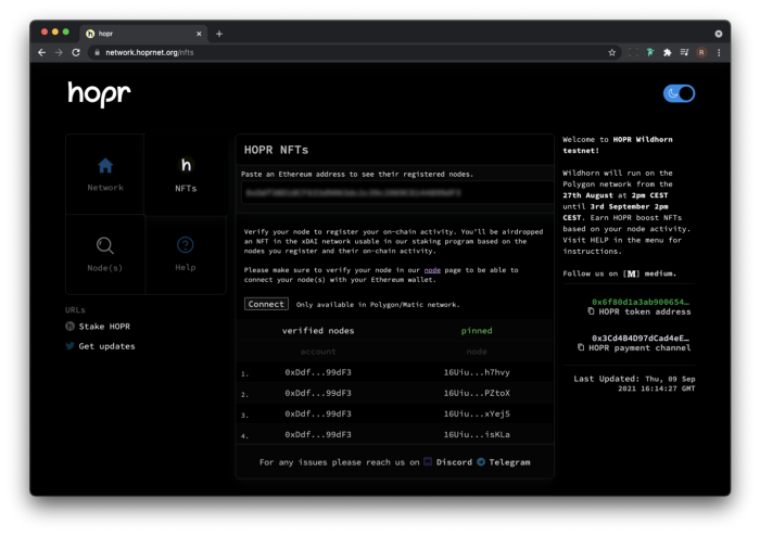 HOPR 노드 실행자의 아이덴티티는 프라이빗하지만, 익명일 필요는 없습니다. 커넥션이 검증 가능하다면, 노드 실행자를 다른 디지털 아이덴티티에 연결할 수 있습니다.
