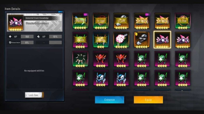 별의 개수와 장비에 부여된 색깔은 장비의 등급과 희소성을 나타냅니다.