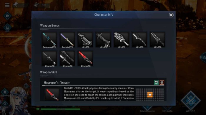 더 많은 무기를 획득할 수록, 히어로가 무기를 장착하지 않아도 생기는 보너스 패시브 스탯을 언락하게 됩니다.