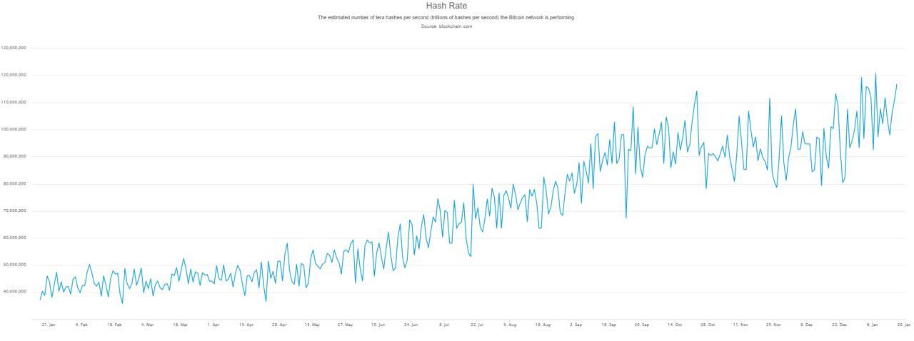 - 비트코인 해쉬레이트는 높은 가격변동에도 불구하고, 계속해서 상승중하고 있습니다.