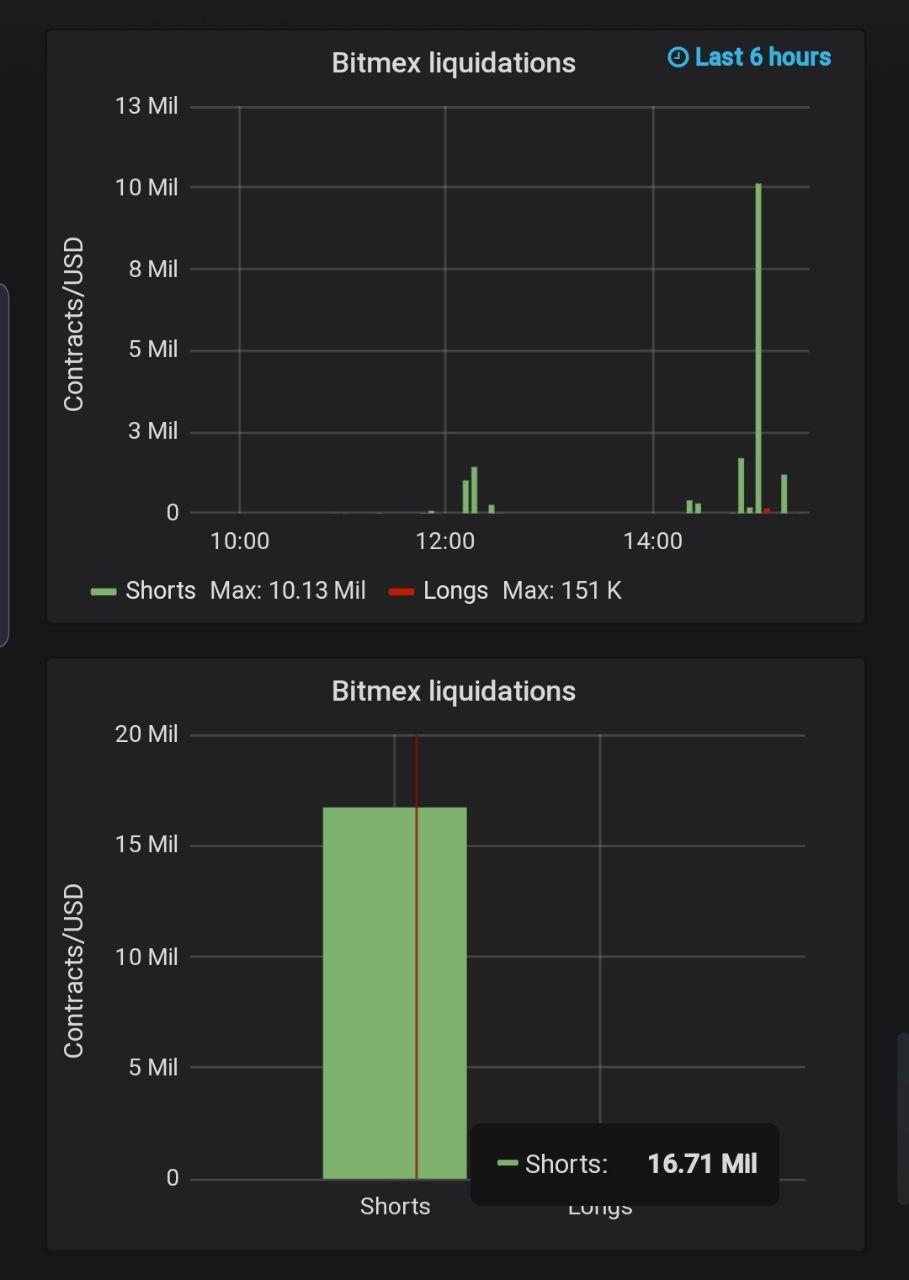 - 이번상승으로 1600만달러의 숏이 청산되었습니다.