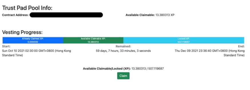2021년 10월 10일 Uniswap V2에서 당사의 IDO 개최 이후, XP 토큰 투자자와 런치패드 (ChainBoost & TrustPad)에서 화이트리스트 된 초기 서포터들은 폴카판타지 베스팅 사이트에서 새 XP 토큰을 청구할 수 있습니다.